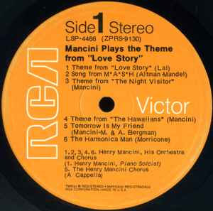 | A1 | –Henry Mancini, His Orchestra and Chorus | Theme From “Love Story” | 2:50 |