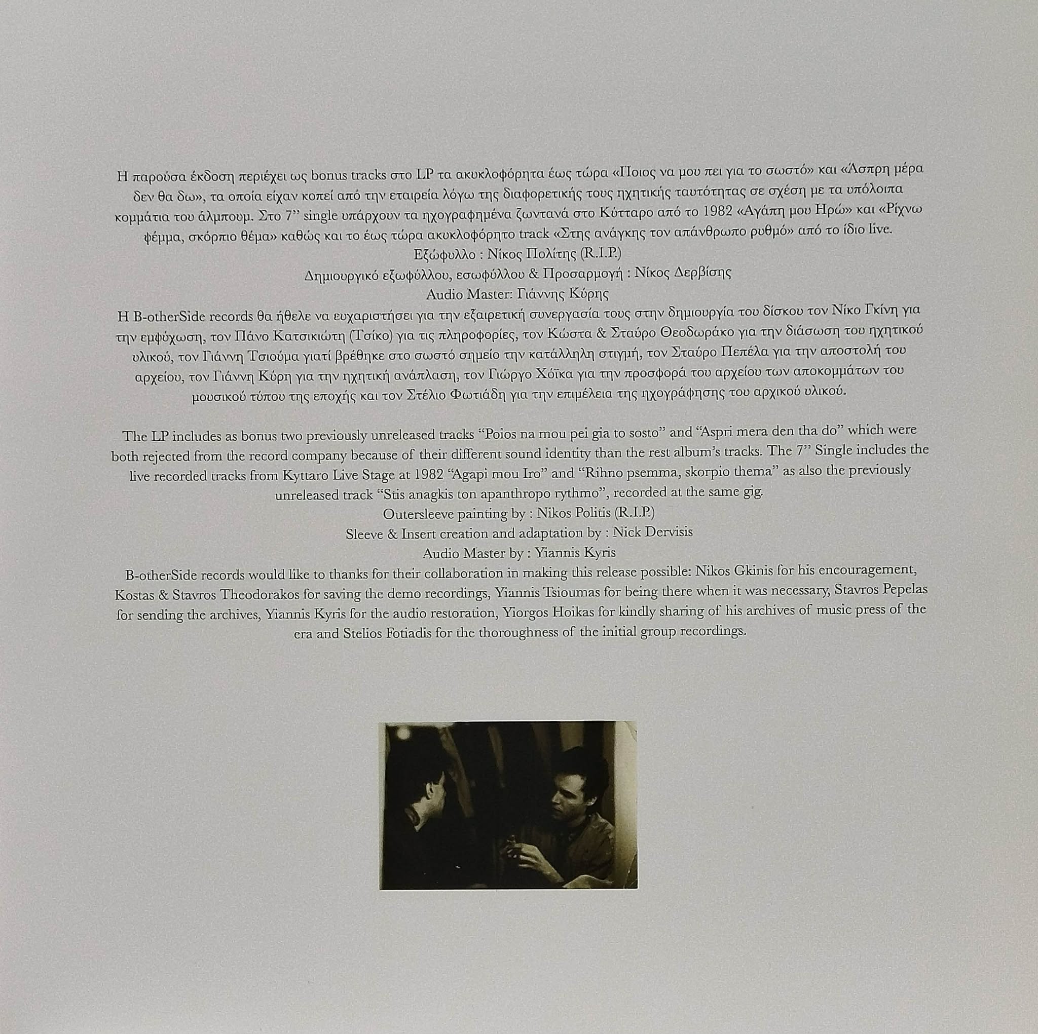 Τhe record has been played two or three times. It is slightly wavy but this does not affect playability. The cover has minimal signs of wear from storage. With insert and 7”. 120 from 350.